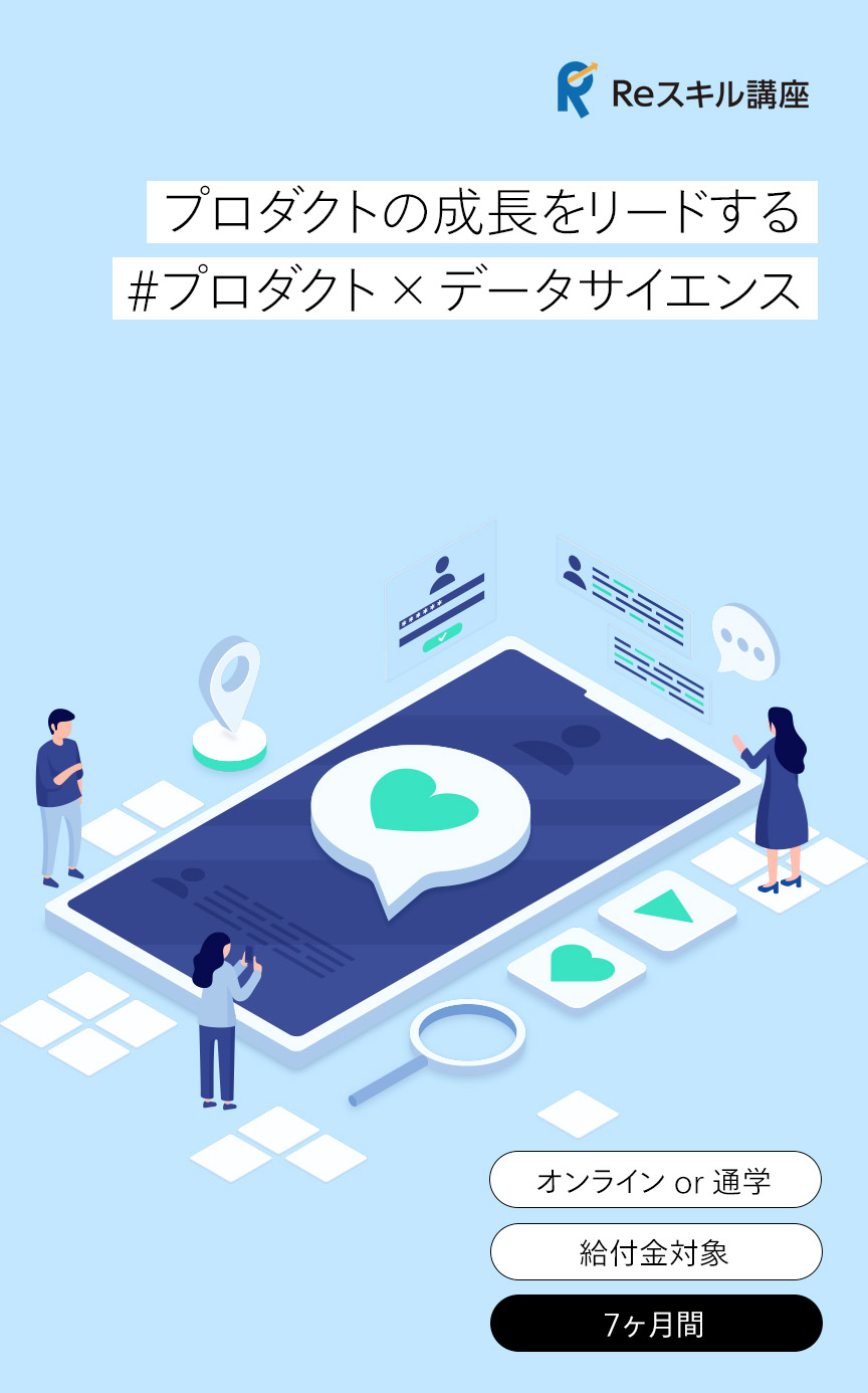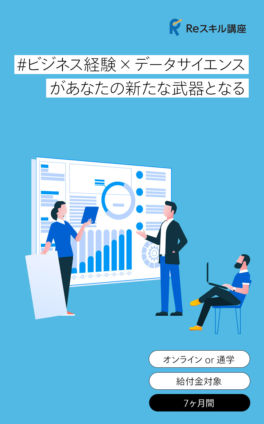 プログラマーやエンジニアだけが学べるスクールではなく、あなたのこれまでのビジネス経験にデータサイエンスを掛け合わせることで新たな価値と可能性を広げるための、あらゆる業種・職種のビジネスパーソンが学ぶことができるスクールです。