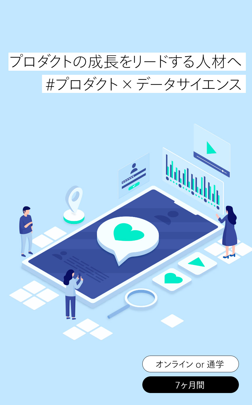 プログラマーやエンジニアだけが学べるスクールではなく、あなたのこれまでのビジネス経験にデータサイエンスを掛け合わせることで新たな価値と可能性を広げるための、あらゆる業種・職種のビジネスパーソンが学ぶことができるスクールです。